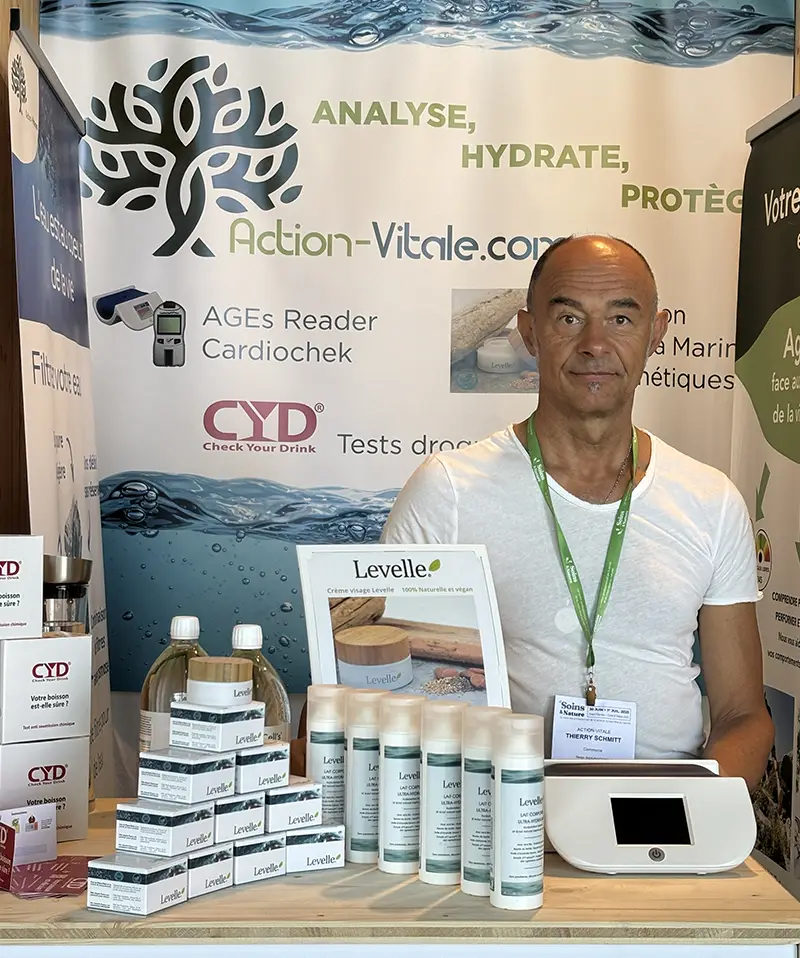 Fondée par Thierry Schmitt, diététicien spécialisé dans les outils de mesure biologique et la prévention, Action Vitale propose une approche globale de la santé, centrée sur un élément fondamental et pourtant sous-estimé : l’eau du quotidien.